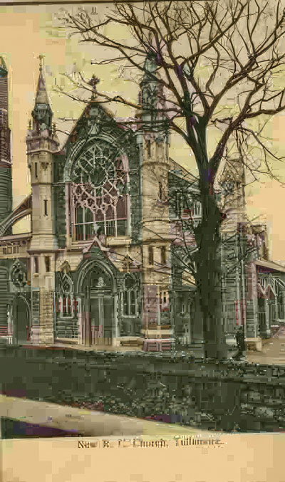 The Offaly Historical and Archaeological Society has pleasure in presenting to the public a reproduction of a souvenir booklet of the early part of the last century depicting the old church now being celebrated. The work of the Society is to serve as a storehouse of community and family history and to make it available to a wide public so as to help people to appreciate what they have and where it came from. Our thanks to Fr Sean McGearty, for many years a curate in Tullamore, and now in Australia, who did so much to kindle interest in church records. Thanks also to Breda Hoey for a copy of the original booklet. To Brid Broderick for her input on the works of art in the present church and finally to the parish priest, Fr Sean Heaney, for his support. A more detailed treatment of the history of the church was published almost twenty years ago.*